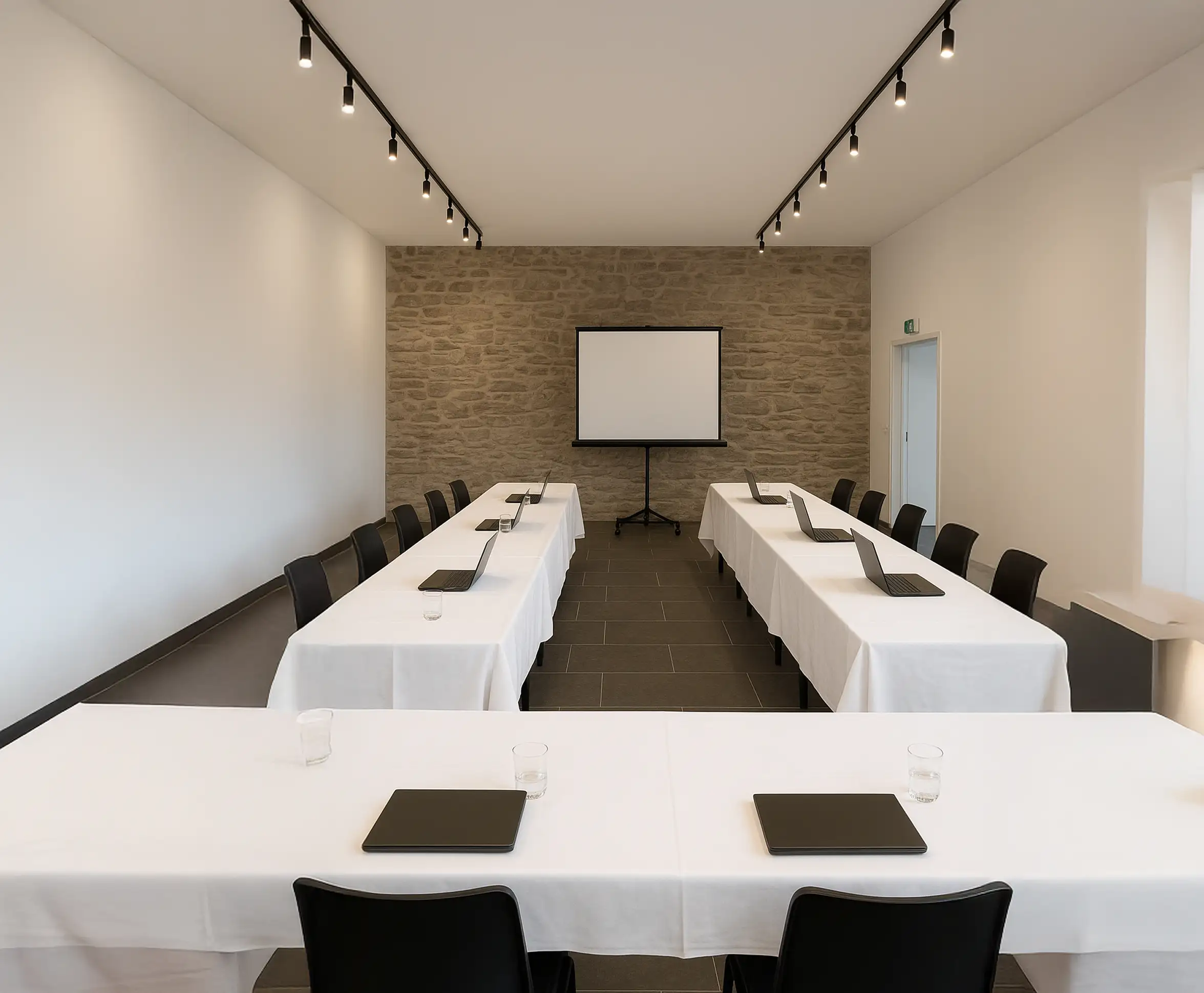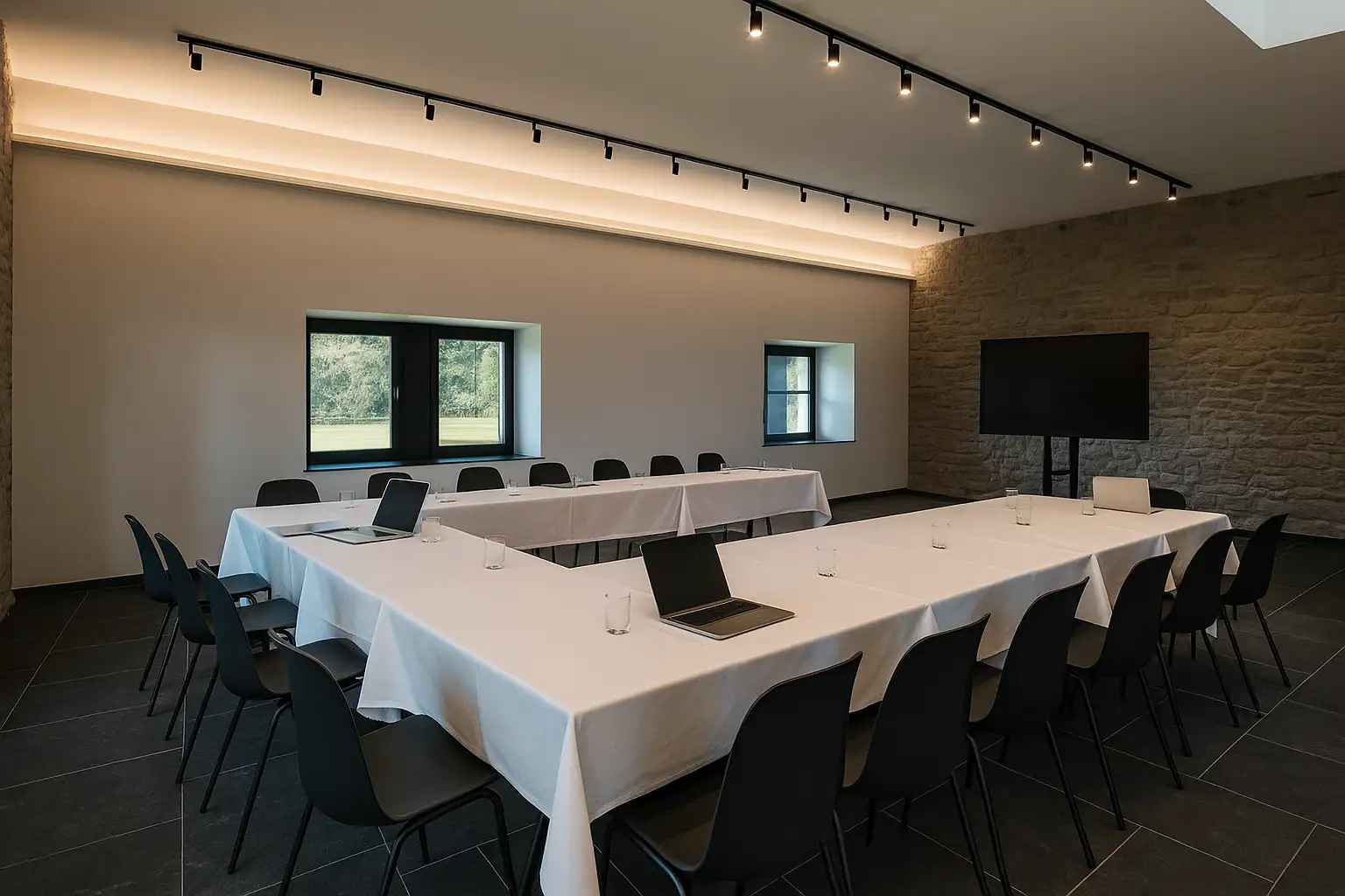 De tweede, perfect geschikt voor uw seminars, beschikt over een 98-inch scherm voor uw presentaties en filmvertoningen. Beide komen uit op een terras met uitzicht op het landgoed en de omliggende natuur, wat een uitzonderlijke setting biedt voor uw festiviteiten.